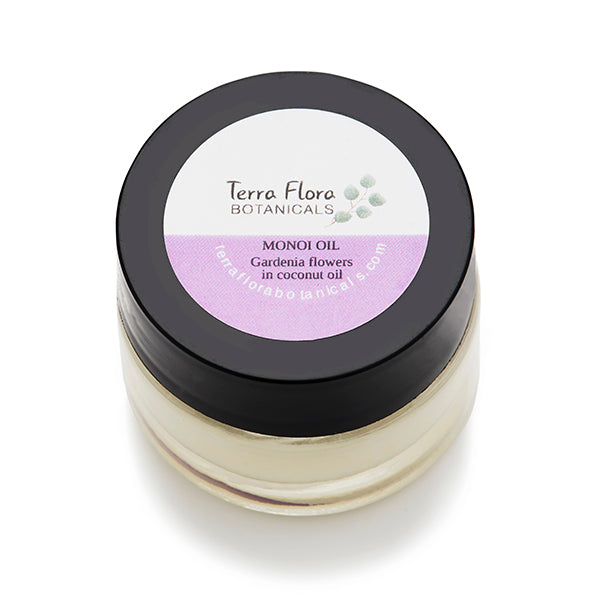 Smell like a tropical vacation every day! An infused perfume oil, created by soaking petals of the Tahitian gardenia in pure coconut oil to release it’s fragrance. Dab a bit here and there and the gentle scent will hint of exotic lands. .25 oz.